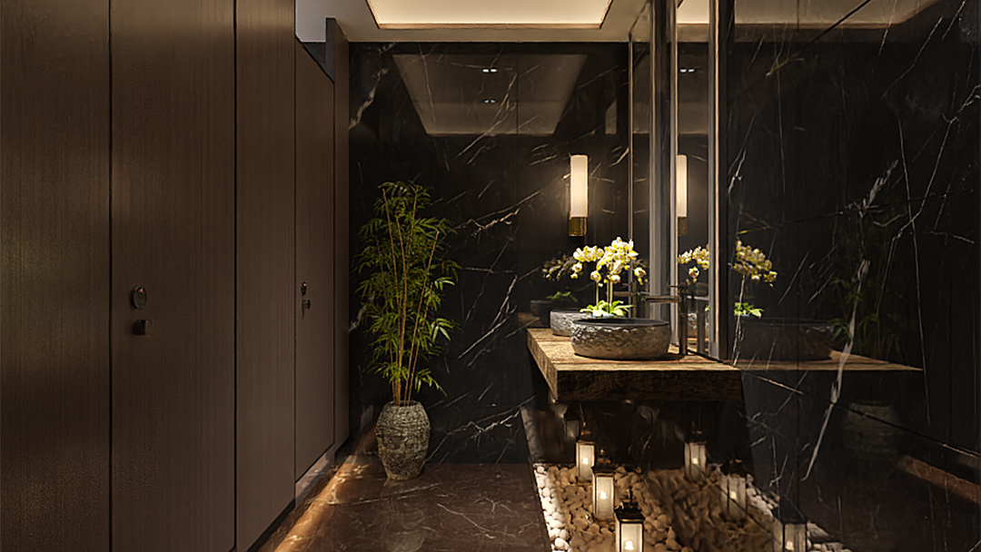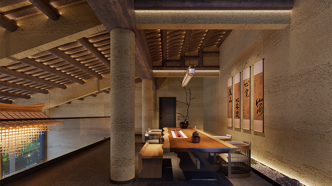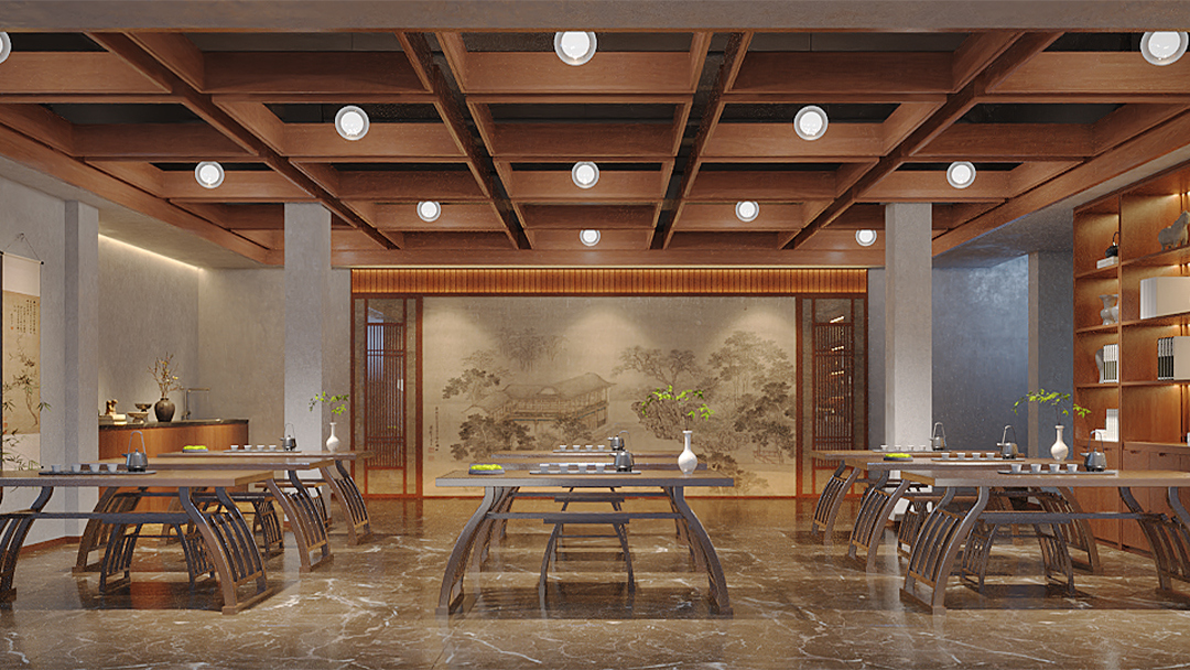 針對不同場景需求,劃分開放品茗區(qū)、私密包廂及商務(wù)洽談區(qū)。例如大廳設(shè)置可移動格柵實(shí)現(xiàn)空間靈活分隔,包間融入榻榻米茶席與獨(dú)立衛(wèi)浴,兼顧社交儀式感與實(shí)用性。 - 細(xì)節(jié)處的文化敘事