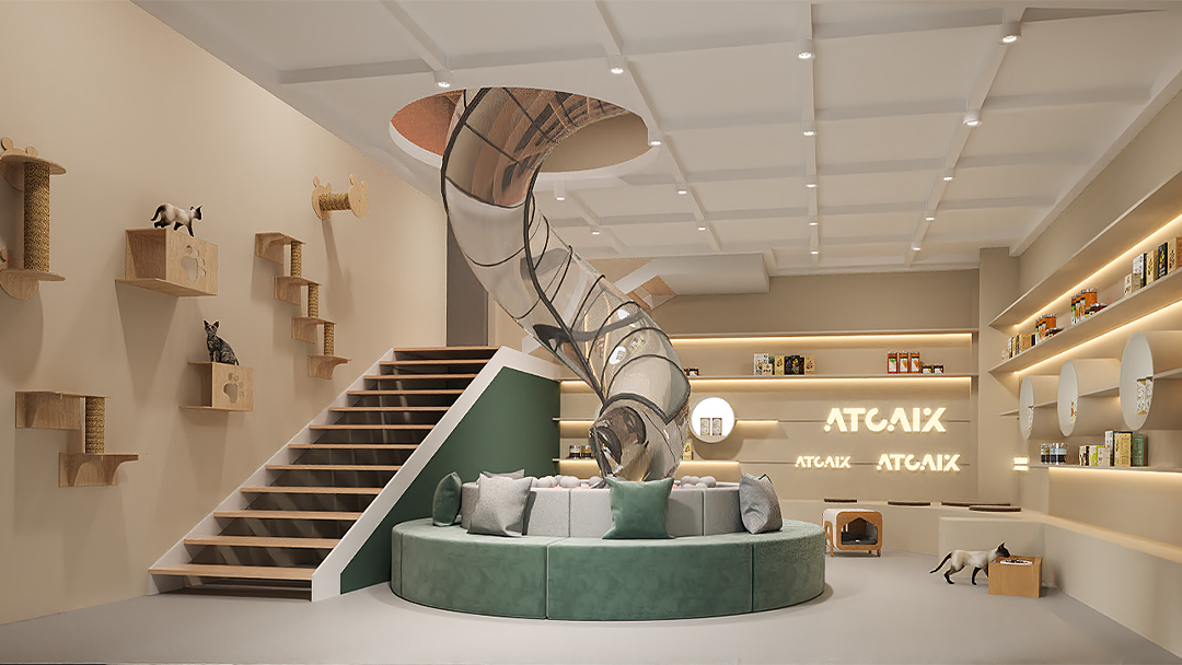 以淺灰水泥漆墻面搭配原木色防火板飾面,局部點綴圓角鏡面不銹鋼防抓條;照明系統(tǒng)結(jié)合4000K防眩射燈與智能調(diào)光面板,可根據(jù)不同時段切換“營業(yè)模式”與“夜間安撫模式”。 - 動線優(yōu)化與情緒關(guān)懷