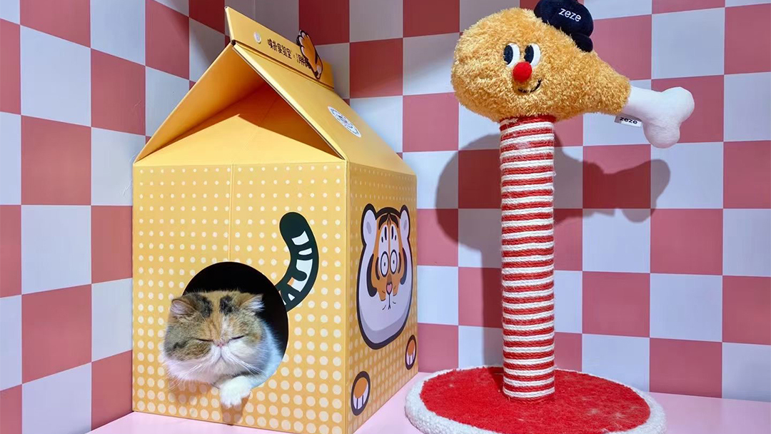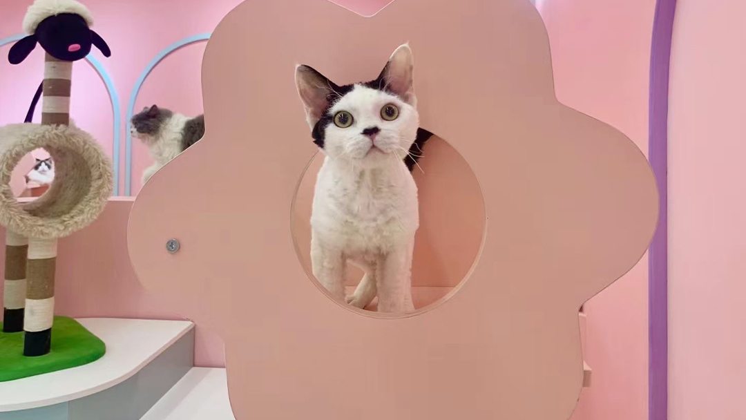 選用食品級不銹鋼操作臺及抗菌PVC墻面,確保安全衛(wèi)生;仿真綠植墻與藤編貓爬架構(gòu)建生態(tài)角落,提升空間趣味性。 - 智能科技融入體驗