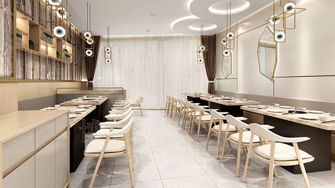 杭州現(xiàn)代簡約風(fēng)快餐店,以純凈的白色主色調(diào),勾勒出簡潔明快的輪廓,營造出清爽開闊的用餐環(huán)境;黃色,作為點睛之筆巧妙融入其中。墻面上的黃色裝飾線條,似靈動的音符,打破了單調(diào);桌椅上搭配的黃色坐墊,為硬朗的線條增添了幾分柔和與溫暖。吊燈,是空間的視覺焦點,造型簡約的吊燈垂掛而下,暖黃色的燈光傾灑,不僅照亮了每一處角落,更營造出溫馨愜意的氛圍。燈光與黃色點綴相互呼應(yīng),讓整個快餐店既具現(xiàn)代時尚感,又不失溫馨舒適。在這里,顧客能快速享受美食,感受現(xiàn)代簡約風(fēng)格與黃色活力碰撞出的獨特魅力。