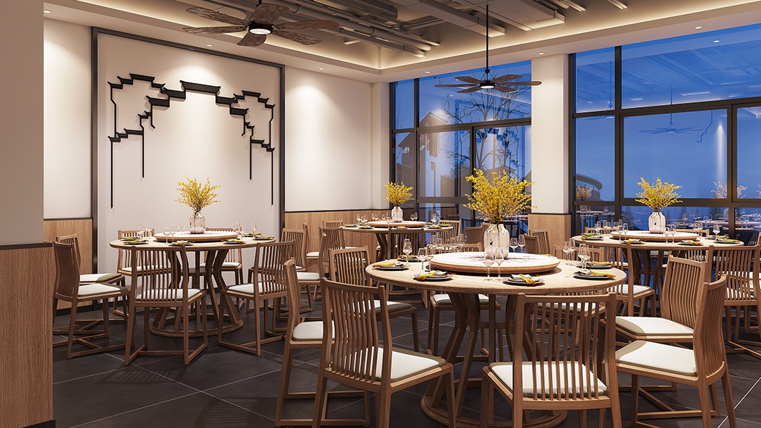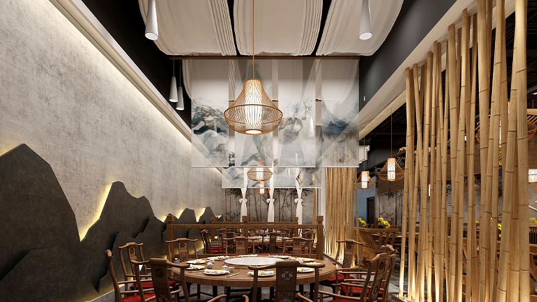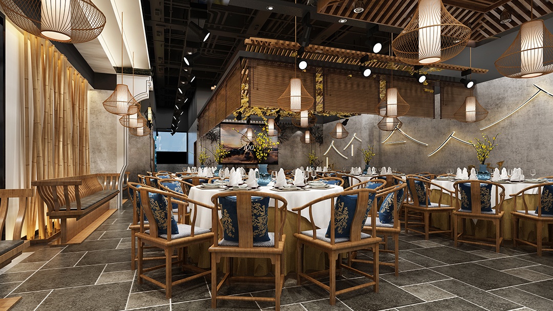 ??燈光設(shè)計,運(yùn)用暖色調(diào)的燈光,打造溫馨、舒適的用餐環(huán)境,同時突出中式裝飾的細(xì)節(jié)美。