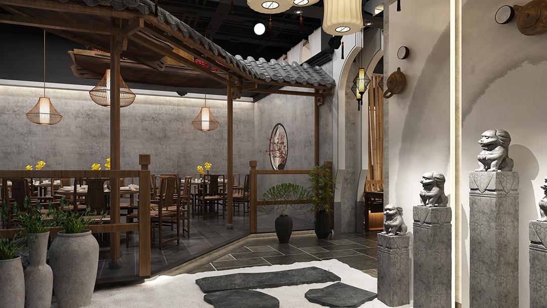 杭州新中式快餐店裝修設計中,我們精心挑選青磚、瓦片、竹編、石雕等杭州特色材料。青磚與瓦片鋪就墻面地面,古樸厚重,似在訴說杭州千年的歷史故事;竹編元素巧妙融入隔斷、燈具,輕盈靈動,為空間增添自然清新之感;石雕擺件點綴其間,或為花鳥,或為山水,盡顯江南的細膩雅致。這些地域特色材料相互交織,不僅強化了餐廳的地域感,更營造出一種寧靜、舒適的用餐氛圍。顧客踏入店內(nèi),仿佛穿越時空,置身于杭州的舊時光里,在享受美食的同時,感受地域文化的獨特魅力,開啟一場味蕾與文化的體驗。