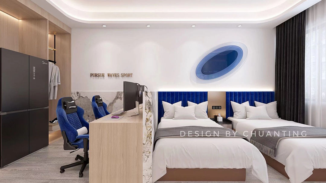 在設(shè)計(jì)上,注重空間規(guī)劃的合理性。對(duì)于電競(jìng)酒店客房,會(huì)根據(jù)不同房型布局,確保滿足住宿與電競(jìng)娛樂的雙重功能,同時(shí)兼顧舒適性與科技感。如設(shè)置合理的電競(jìng)設(shè)備擺放位置、舒適的休息區(qū)域等。