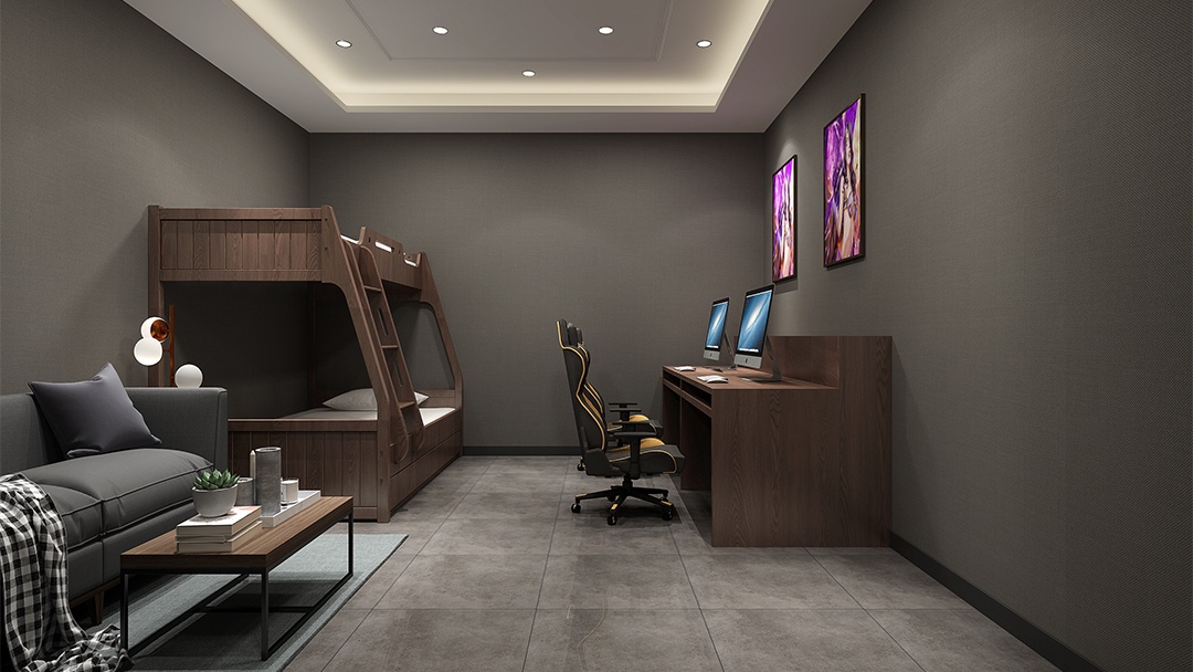 針對(duì)杭州電競(jìng)酒店LOFT裝修設(shè)計(jì),博妍裝飾從功能規(guī)劃入手,合理劃分出電競(jìng)區(qū)、休息區(qū)與衛(wèi)浴區(qū),采用工業(yè)風(fēng)的設(shè)計(jì)元素,如裸露的水泥墻面、金屬樓梯和管道,搭配可編程LED燈帶,營(yíng)造出充滿未來感的電競(jìng)氛圍。同時(shí),選用符合人體工學(xué)的電競(jìng)椅、定制設(shè)備桌以及高性能電腦套裝,提升用戶體驗(yàn)。在軟裝方面,融入游戲主題墻繪、手辦展示柜和復(fù)古游戲機(jī)收藏區(qū),滿足年輕人對(duì)個(gè)性化和社交互動(dòng)的需求。