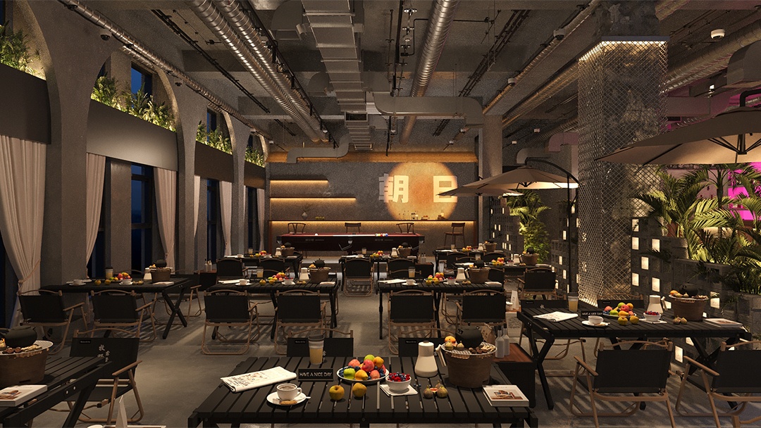 杭州露天庭院酒吧裝修設計,本案以“城市野趣庭院”為核心理念,融合園林意境與現(xiàn)代社交場景。墻面采用銹板與毛石拼貼,嵌入壁爐與投影幕布。植物墻內置隱形音響系統(tǒng),播放自然白噪音。整體以低照度庭院燈與燭光營造層次光影,打造四季皆宜的半戶外微醺社交聚落。