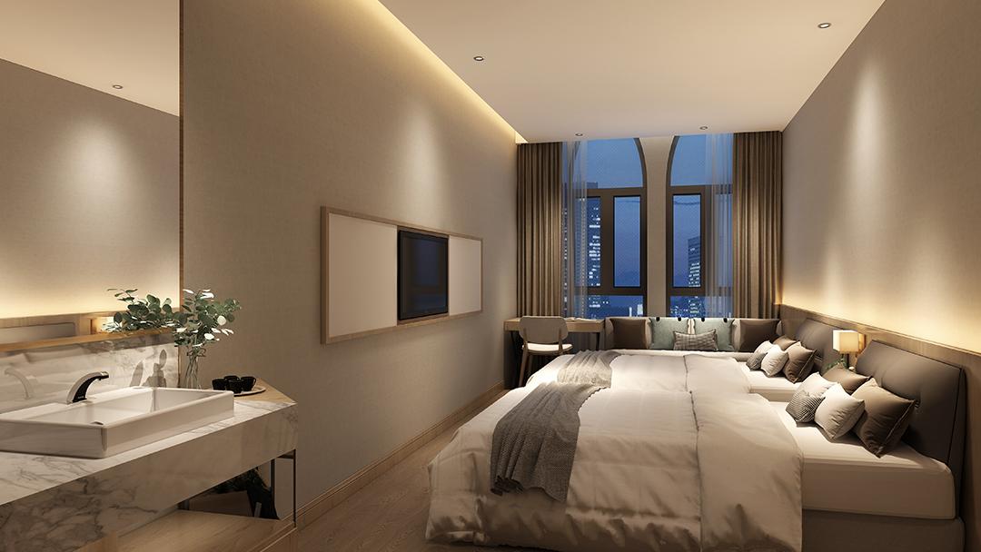 杭州精品商務(wù)酒店裝修設(shè)計(jì),本案以“隱逸商務(wù)”為核心理念,巧妙融合東方禪意與現(xiàn)代高效。大堂以淺灰石材構(gòu)建出寧?kù)o雅致的抵達(dá)體驗(yàn),前臺(tái)背景墻嵌入動(dòng)態(tài)水墨數(shù)字屏風(fēng),動(dòng)靜相宜??头坎捎媚K化智能系統(tǒng),一鍵切換會(huì)議、休憩模式;隔音墻體與人體工學(xué)辦公家具,保障高效工作。重點(diǎn)打造24小時(shí)靜音共享書房與城市觀景茶室,為商務(wù)旅人提供鬧中取靜的能量補(bǔ)給站,實(shí)現(xiàn)商務(wù)功能與心靈休憩的完美平衡。