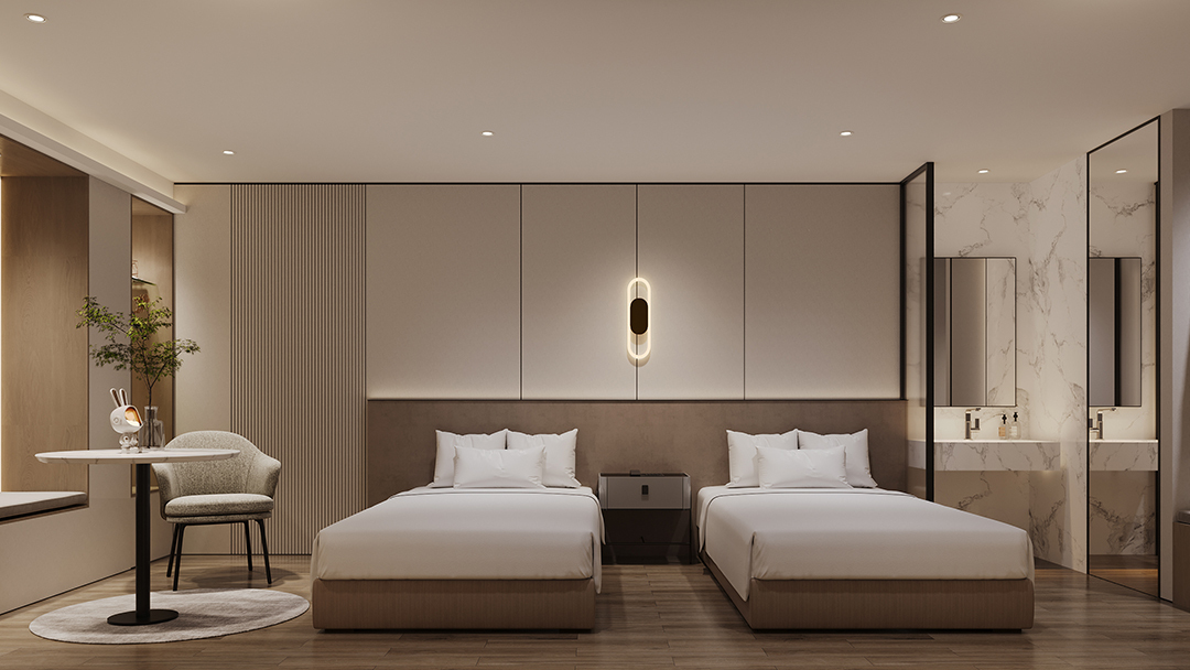 杭州商務(wù)會議酒店設(shè)計裝修,本案以“高效賦能·優(yōu)雅會議”為核心,將智能科技與東方商務(wù)美學(xué)深度結(jié)合。會議廳采用模塊化隔斷系統(tǒng),支持多場景靈活切換,并嵌入全息投影與同聲傳譯設(shè)備;墻面選用吸音波紋板材,確保聲場純凈。公共空間以淺木紋與深灰石材鋪陳,打造靜謐休憩走廊。重點設(shè)計“云端董事會議室”——270°環(huán)幕視野搭配智能會議記錄系統(tǒng),實現(xiàn)高效決策與杭州城市意象的視覺融合,重塑高端商務(wù)體驗新標準。