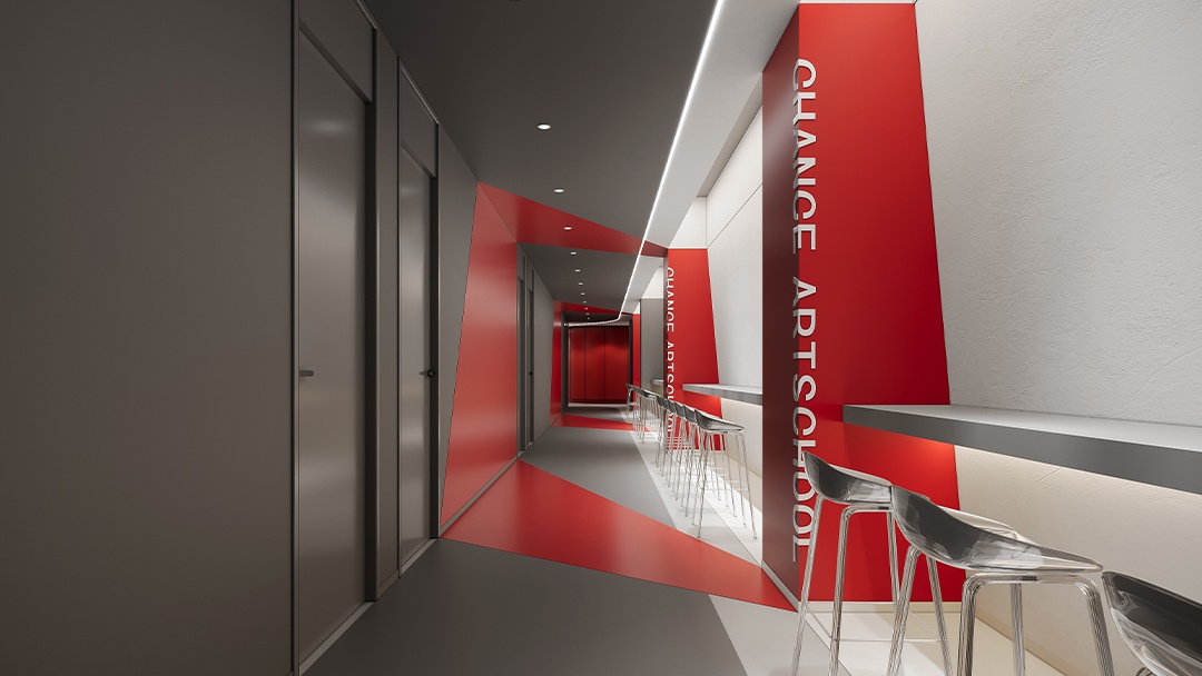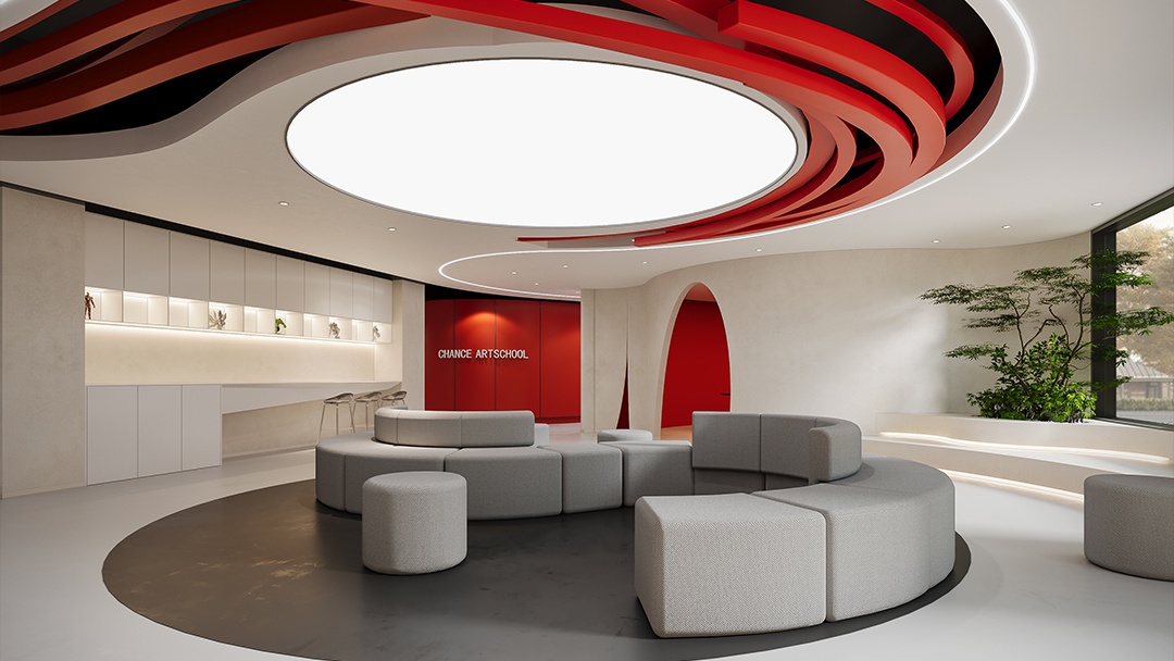杭州藝術(shù)類培訓(xùn)機(jī)構(gòu)裝修設(shè)計(jì),本案將空間本身作為藝術(shù)教學(xué)媒介。墻面采用可擦寫涂層與磁性展示系統(tǒng),地面保留部分水泥肌理用于即興創(chuàng)作。定制可升降畫架與旋轉(zhuǎn)儲(chǔ)物模塊,實(shí)現(xiàn)空間場(chǎng)景自由重組。自然光通過漸變玻璃幕墻濾入,搭配軌道射燈系統(tǒng)滿足多媒介創(chuàng)作照明需求。中心挑空區(qū)設(shè)“創(chuàng)想階梯”,兼具作品展示、即興演講與休憩功能,營(yíng)造開放流動(dòng)的藝術(shù)共創(chuàng)氛圍。