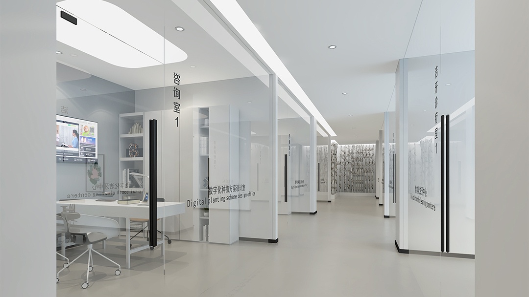 針對口腔診所的特殊性,博妍裝飾特別注重細節(jié)處理:獨立診室配備全景式玻璃隔斷,保證私密性的同時引入自然光線;消毒供應(yīng)區(qū)采用透明可視化設(shè)計,增強操作透明度與信任度。此外,公司還引入BIM技術(shù)實現(xiàn)多專業(yè)協(xié)同,并通過AR/VR技術(shù)讓客戶提前預(yù)覽裝修效果,確保設(shè)計方案精準(zhǔn)落地。