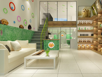 3、細節(jié)優(yōu)化:墻面安裝可拆卸式寵物沐浴架,方便固定掙扎的寵物;頂部預留消毒燈軌道,每日營業(yè)結(jié)束后進行紫外線消殺;洗護區(qū)與干區(qū)之間設置玻璃隔斷,既保持通透感又防止水花外濺。