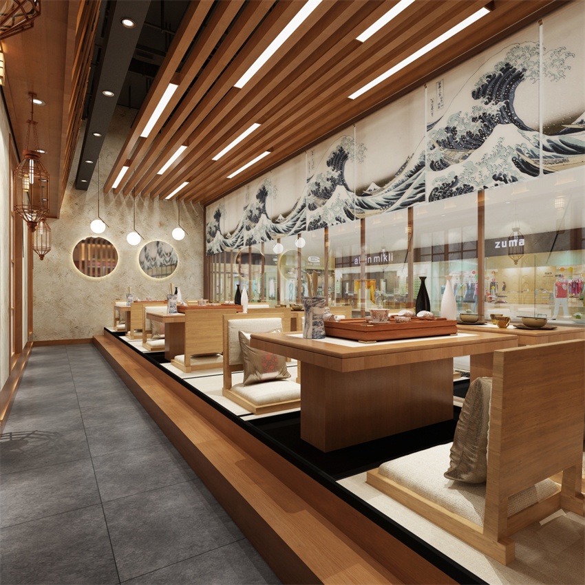 空間布局:采用“回字形”或“L形”動線,將烹飪區(qū)、展示區(qū)與用餐區(qū)自然銜接,避免顧客與廚房操作產(chǎn)生距離感。