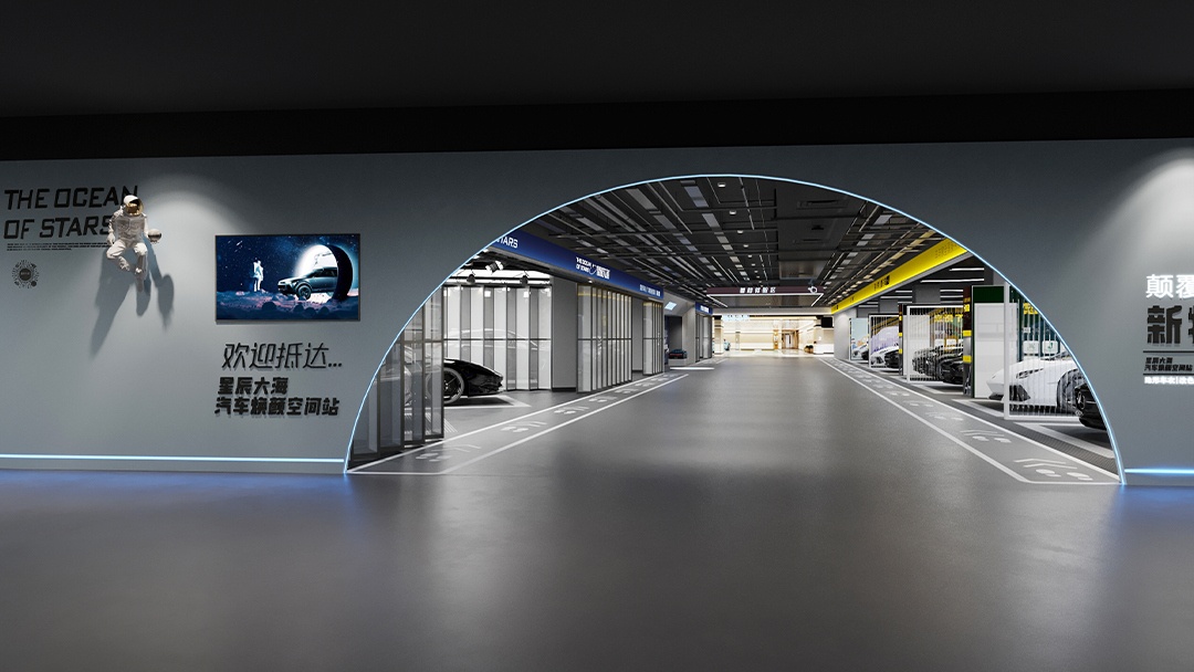 杭州智能汽車美容院裝修設(shè)計(jì),本案構(gòu)建全流程智能養(yǎng)護(hù)場景??臻g采用白色高光納米涂層墻面與深灰導(dǎo)光地膠,頂部集成無影AI檢測光源陣列,可自動(dòng)識(shí)別車身劃痕與漆面狀態(tài)。施工區(qū)配備機(jī)械臂輔助清洗系統(tǒng)與物聯(lián)網(wǎng)水質(zhì)監(jiān)測終端,客戶可通過手機(jī)端實(shí)時(shí)查看護(hù)理數(shù)據(jù)圖譜。休息區(qū)設(shè)置全息投影沙盤,動(dòng)態(tài)演示護(hù)理工藝與材料特性,以科技透明化重塑高端汽車美容的服務(wù)信任體系。