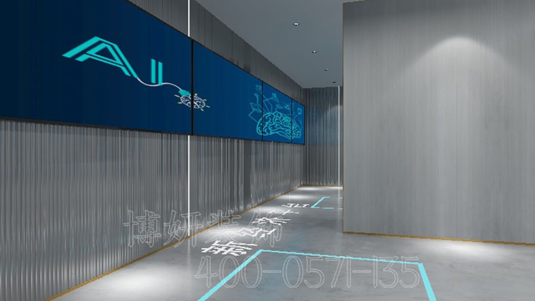 多媒體設(shè)備與空間設(shè)計(jì)完美融合,通過(guò)互動(dòng)展示、沉浸式體驗(yàn)等形式,讓參觀者深度感受數(shù)字科技的魅力。杭州數(shù)字多媒體展廳,以灰白藍(lán)的色彩搭配與線性燈帶的巧妙運(yùn)用,打造出一個(gè)大氣、前沿且極具吸引力的科技展示空間。