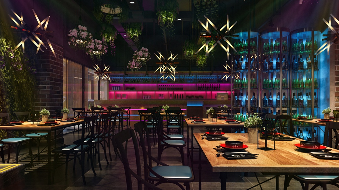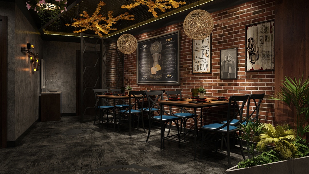 杭州復(fù)古工業(yè)風(fēng)餐飲店裝修設(shè)計(jì)中,為凸顯店鋪的氛圍感,我們使用灰色水泥墻面,展示水泥的自然紋理,以保持原始質(zhì)感,為店鋪增添一份獨(dú)特的個(gè)性。同時(shí),在一部分墻面使用紅磚,與灰色水泥墻面形成對(duì)比,為空間增添一抹溫暖的色彩。其質(zhì)感、顏色與店鋪的熱烈氛圍相得益彰。此外,我們還懸掛了一些復(fù)古風(fēng)格的掛畫或照片,以增強(qiáng)空間的故事感。這些元素,不僅美觀實(shí)用,還能給顧客帶來一種復(fù)古,而溫馨的感覺。