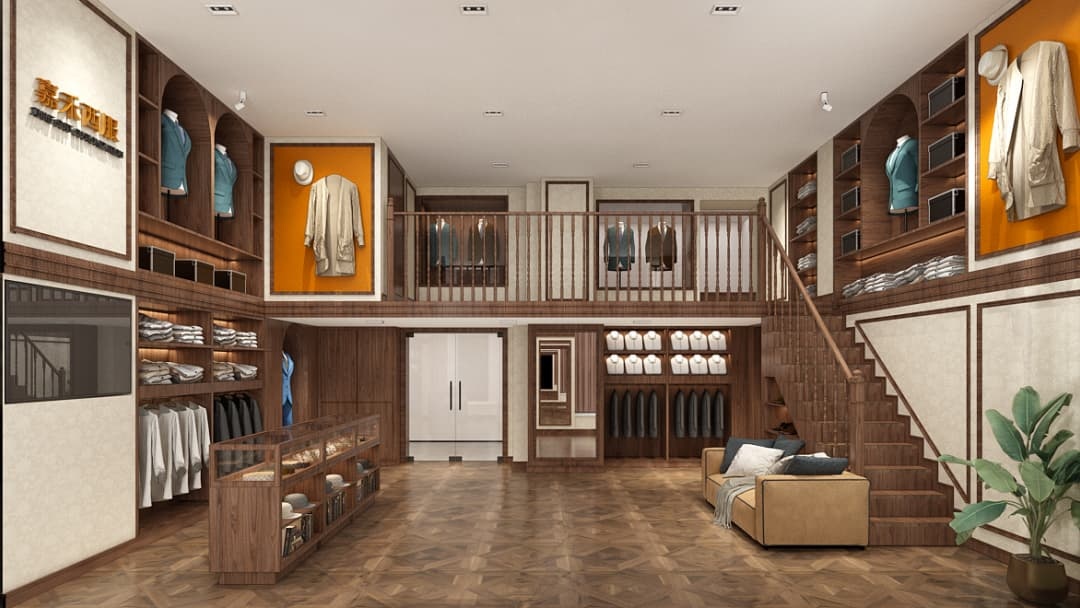 針對高端西裝定制場景,博妍團(tuán)隊(duì)從功能到美學(xué)全面規(guī)劃:采用啞光金屬與胡桃木飾面營造沉穩(wěn)基調(diào),搭配智能照明系統(tǒng)突顯面料質(zhì)感;獨(dú)立量體區(qū)配備專業(yè)鏡面與柔光背景,增強(qiáng)顧客參與感;VIP鑒賞區(qū)以半圍合式布局結(jié)合智能家居,提升私密性與舒適度。其設(shè)計(jì)不僅注重視覺呈現(xiàn),更通過動(dòng)線優(yōu)化提升服務(wù)效率,例如半成品展示區(qū)與成品交付區(qū)的科學(xué)劃分,強(qiáng)化客戶信任度。作為一站式工裝服務(wù)商,博妍自有施工團(tuán)隊(duì)嚴(yán)格執(zhí)行環(huán)保標(biāo)準(zhǔn),配套弱電暖通、消防改造等全鏈條服務(wù),確保項(xiàng)目高效落地。
