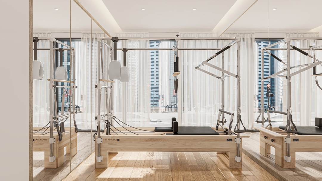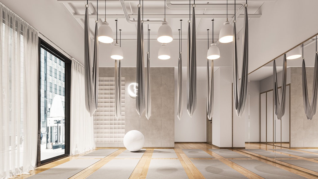 杭州瑜伽普拉提館裝修設(shè)計(jì),本案以「流動(dòng)的平衡」為設(shè)計(jì)理念,空間采用柔弧曲面墻與橡木地板結(jié)合,營(yíng)造溫暖包容的氛圍。定制可調(diào)節(jié)天窗系統(tǒng),精準(zhǔn)控制自然光入射角度,配合隱藏式聲學(xué)穹頂優(yōu)化聽覺體驗(yàn)。核心區(qū)設(shè)置懸浮式普拉提重組器械墻,實(shí)現(xiàn)空間多功能轉(zhuǎn)換。冥想?yún)^(qū)墻面嵌入熱感壁畫,接觸時(shí)顯現(xiàn)植物脈絡(luò)光影。整體以低飽和色彩為基調(diào),打造身心合一的沉浸式療愈場(chǎng)域。