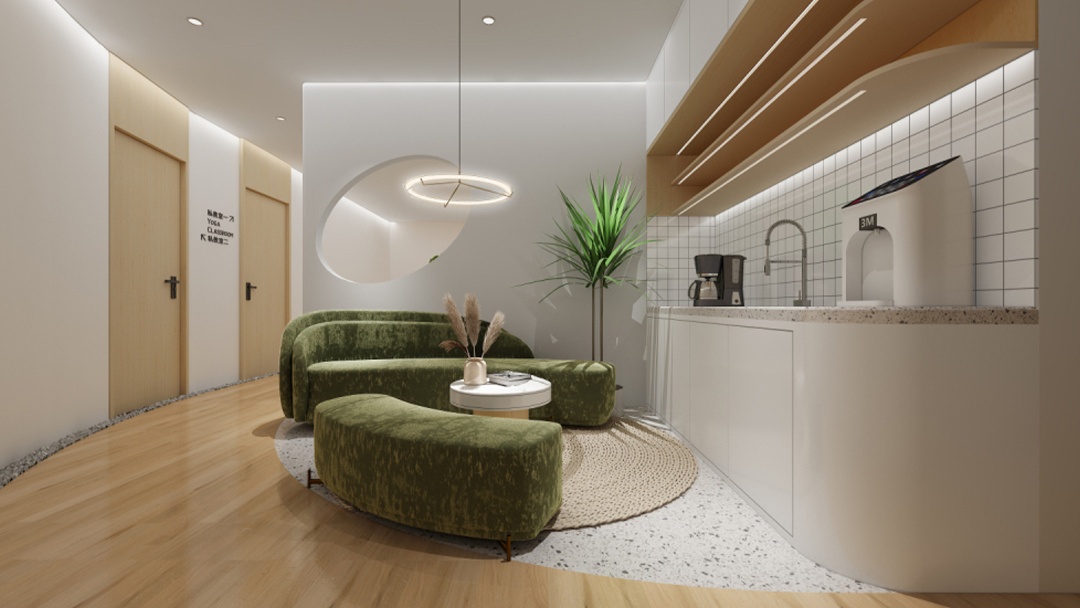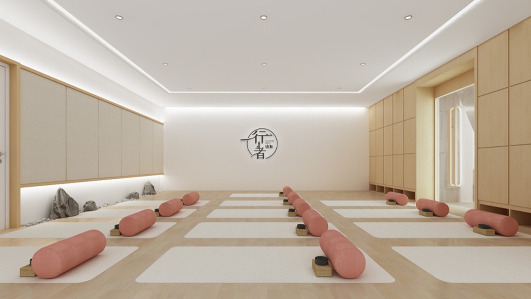 杭州原木風瑜伽館裝修設計,本案以「木與光的呼吸」為主題,全線采用可再生原木構建空間骨架。天花交錯排列榫卯結構木梁,自然光線透過格柵形成動態(tài)光影。墻面嵌入苔蘚藝術裝置與隱形聲學系統(tǒng),保證靜謐體驗。地面鋪設天然劍麻地墊,起伏處延伸為定制木質輔具陳列墻。重點打造「年輪冥想區(qū)」,中心環(huán)狀木紋地臺搭配地暖,墻面投影森林季相變化影像,實現人與自然在呼吸間的深度連接。