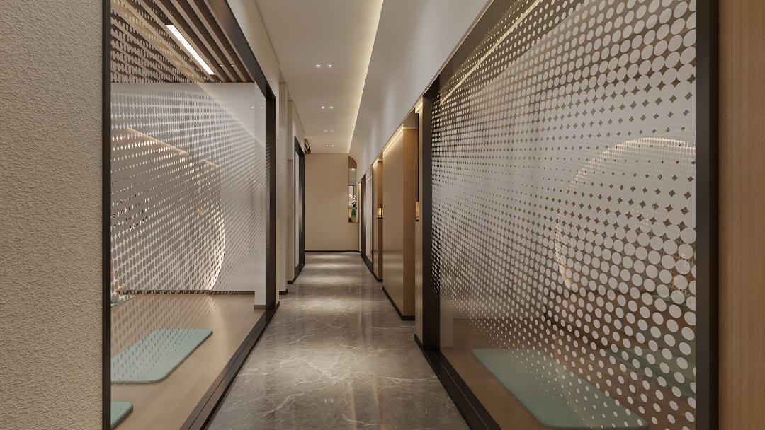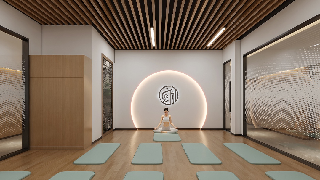 杭州禪意瑜伽館裝修設(shè)計(jì),本案以「空谷回音」為意境內(nèi)核,將江南園林的借景手法引入室內(nèi)。以夯土墻面為背景,頂部開(kāi)設(shè)條形天窗,隨著時(shí)辰變化在微水泥地面投下流動(dòng)光斑。定制弧形竹編屏風(fēng)區(qū)隔空間,搭配枯山水白沙庭院造景。重點(diǎn)打造「聽(tīng)雨冥想軒」——隱藏式噴霧系統(tǒng)配合仿真雨聲音頻,蒲團(tuán)下設(shè)置地暖溫控系統(tǒng)??臻g無(wú)主燈設(shè)計(jì),僅以陶罐燈與壁龕燭光點(diǎn)綴,營(yíng)造出靜觀內(nèi)省的東方禪修之境。