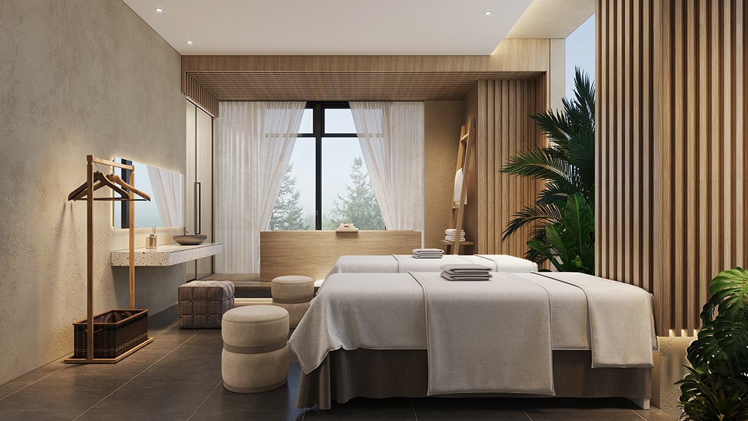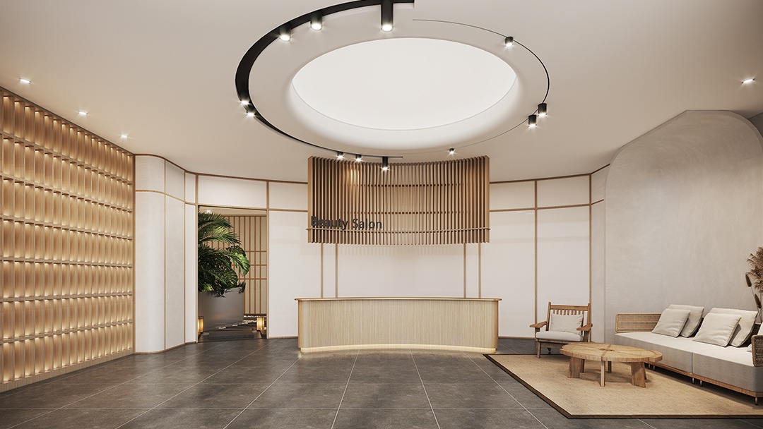 設計上,運用淡雅的莫蘭迪色系與天然材質(zhì),如原木、棉麻、石材,營造溫潤柔和的觸感與視覺體驗;通過曲線造型、鏤空隔斷及光影設計,模擬江南園林的移步換景,讓空間充滿流動的韻律感。功能布局上,合理規(guī)劃接待區(qū)、護理間、休閑區(qū)等動線,兼顧私密性與開放性,并引入智能環(huán)境控制系統(tǒng),確保溫濕度與香氛的精準調(diào)節(jié),提升客戶沉浸感。
