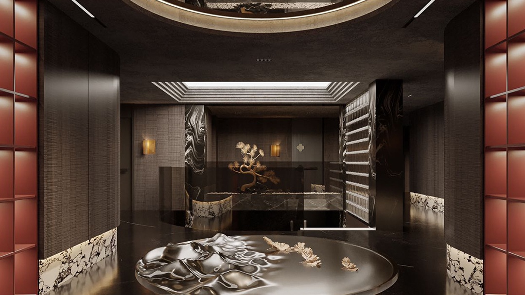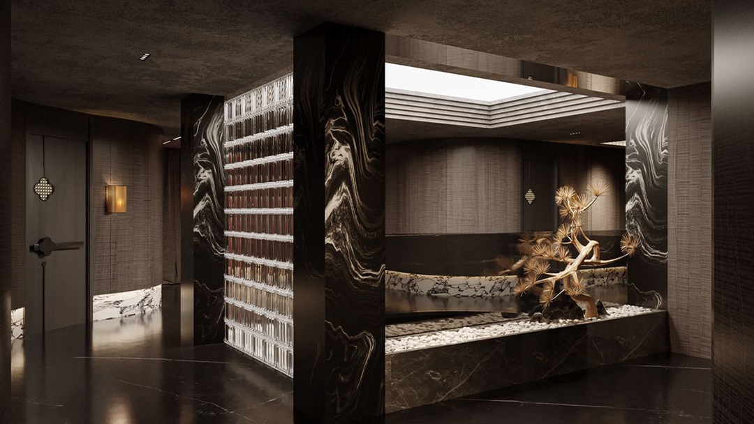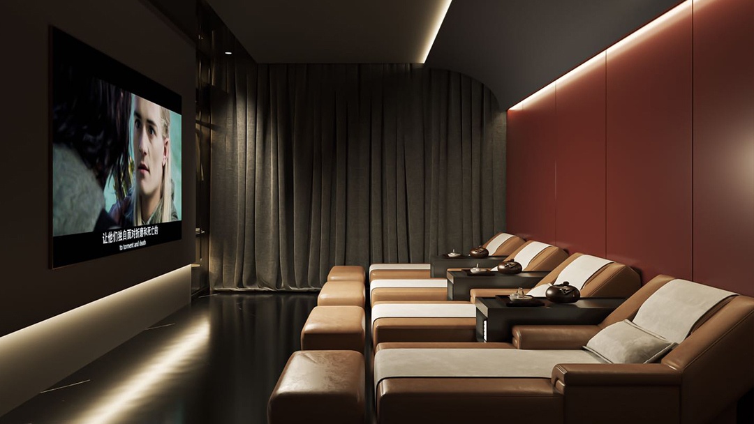 杭州新中式足道館裝修設(shè)計(jì),本案以“文人雅集·足下山水”為意境,將江南園林的借景手法引入室內(nèi)。空間以青灰磚與原木格柵為基底,走廊設(shè)計(jì)為曲徑通幽的月洞門序列。包廂內(nèi)設(shè)榻榻米式足療位,背景墻嵌入動態(tài)水墨投影與實(shí)木博古架。重點(diǎn)打造“聽雨軒”——天窗下懸垂銅制雨鏈,下方承接白砂石庭院,配合仿真雨聲音效與蕨類植物墻,營造出“檐下聽雨,足沐春泉”的沉浸式養(yǎng)生詩境。