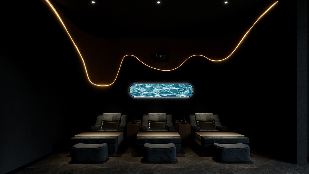 杭州養(yǎng)生禪意足浴店裝修設(shè)計(jì),本案以“空谷回音”為禪修意境,打造都市中的靜心療愈場(chǎng)域。地面鋪設(shè)溫潤(rùn)老船木地板,點(diǎn)綴枯山水微景觀。足療區(qū)設(shè)蒲團(tuán)式下沉座位,頂部懸掛手工紙燈籠,光線柔和如月暈。墻面嵌入隱形音響系統(tǒng),循環(huán)播放溪流、竹林自然白噪音?;⌒务讽攦?nèi)設(shè)呼吸引導(dǎo)光影裝置,結(jié)合艾草香薰與地暖溫石療法,在極致簡(jiǎn)約中引領(lǐng)身心歸靜。