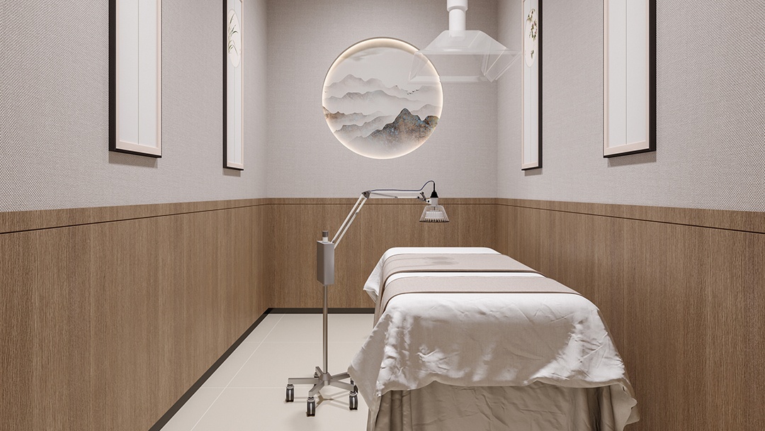 杭州專業(yè)中醫(yī)館裝修設(shè)計(jì),通過(guò)空間敘事清晰呈現(xiàn)中醫(yī)診療邏輯。入口設(shè)置透明煎藥展示區(qū)與藥材檢驗(yàn)互動(dòng)屏,增強(qiáng)信任感。診療區(qū)采用模塊化隔斷系統(tǒng),依據(jù)“望聞問(wèn)切”流程分區(qū),配備可調(diào)節(jié)色溫的脈診專用燈光。治療室整合隱藏式熏蒸管道與智能艾煙凈化系統(tǒng),墻面嵌入手繪經(jīng)絡(luò)發(fā)光圖譜。整體以暖灰、原木與銅色為主調(diào),通過(guò)材質(zhì)秩序與科技輔助,構(gòu)建兼具專業(yè)嚴(yán)謹(jǐn)度與人文溫度的醫(yī)療空間。