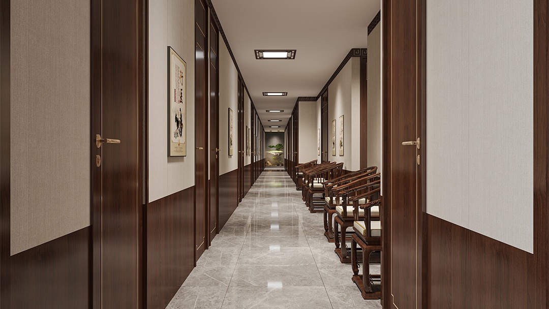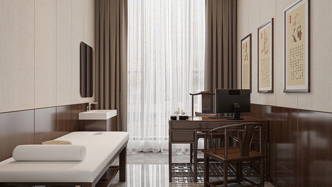 杭州智慧中醫(yī)館裝修設(shè)計,構(gòu)建“人機(jī)協(xié)同”的診療環(huán)境。入口設(shè)AI面診儀與舌象采集屏,數(shù)據(jù)實時同步至醫(yī)師工作站。診療區(qū)配備智能脈診輔助設(shè)備與全息經(jīng)絡(luò)投影系統(tǒng),治療床集成紅外熱成像與穴位定位光導(dǎo)。藥材區(qū)采用智能配藥機(jī)械臂與透明溯源展示柜。整體空間以淺木色與科技藍(lán)為基調(diào),通過物聯(lián)網(wǎng)整合預(yù)約、診療、煎藥全流程數(shù)據(jù),實現(xiàn)傳統(tǒng)經(jīng)驗與智能分析的融合呈現(xiàn)。
